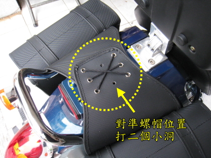 ![]() 【圖八】在馬鞍袋提把上方,打二個小洞